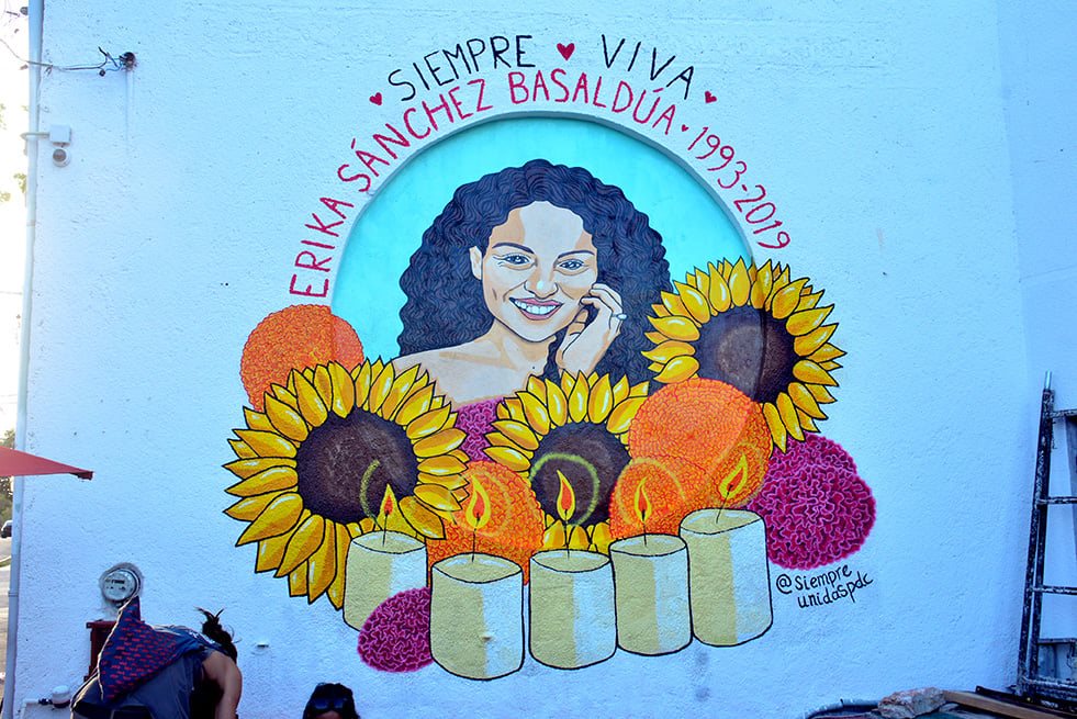 Mural en memoria de Erika Sánchez Basaldúa en Playa del Carmen, Quintana Roo.