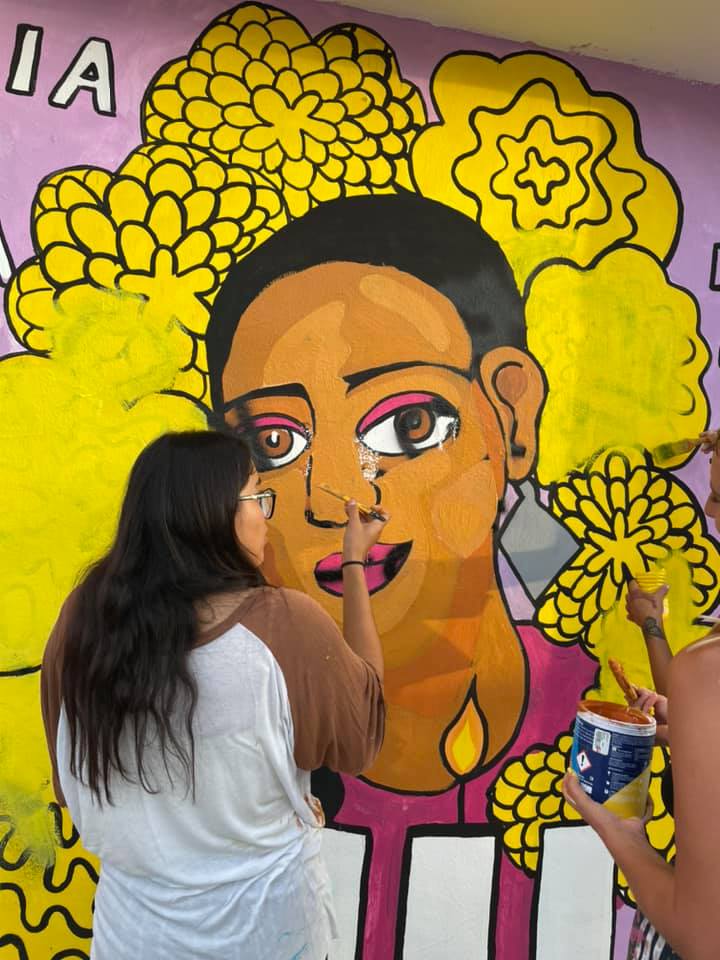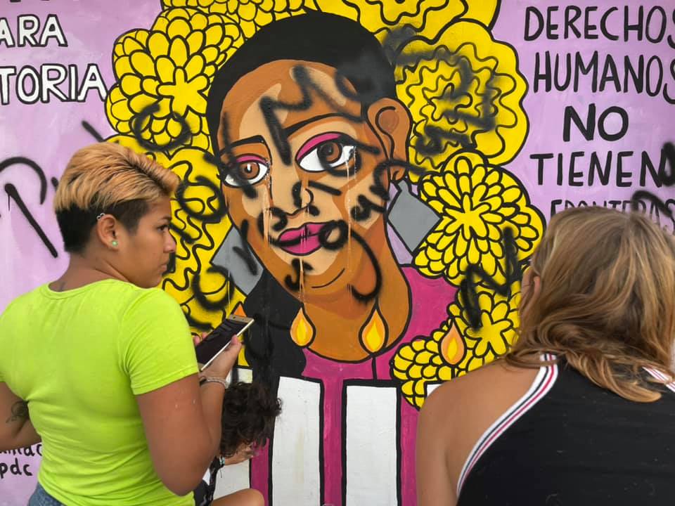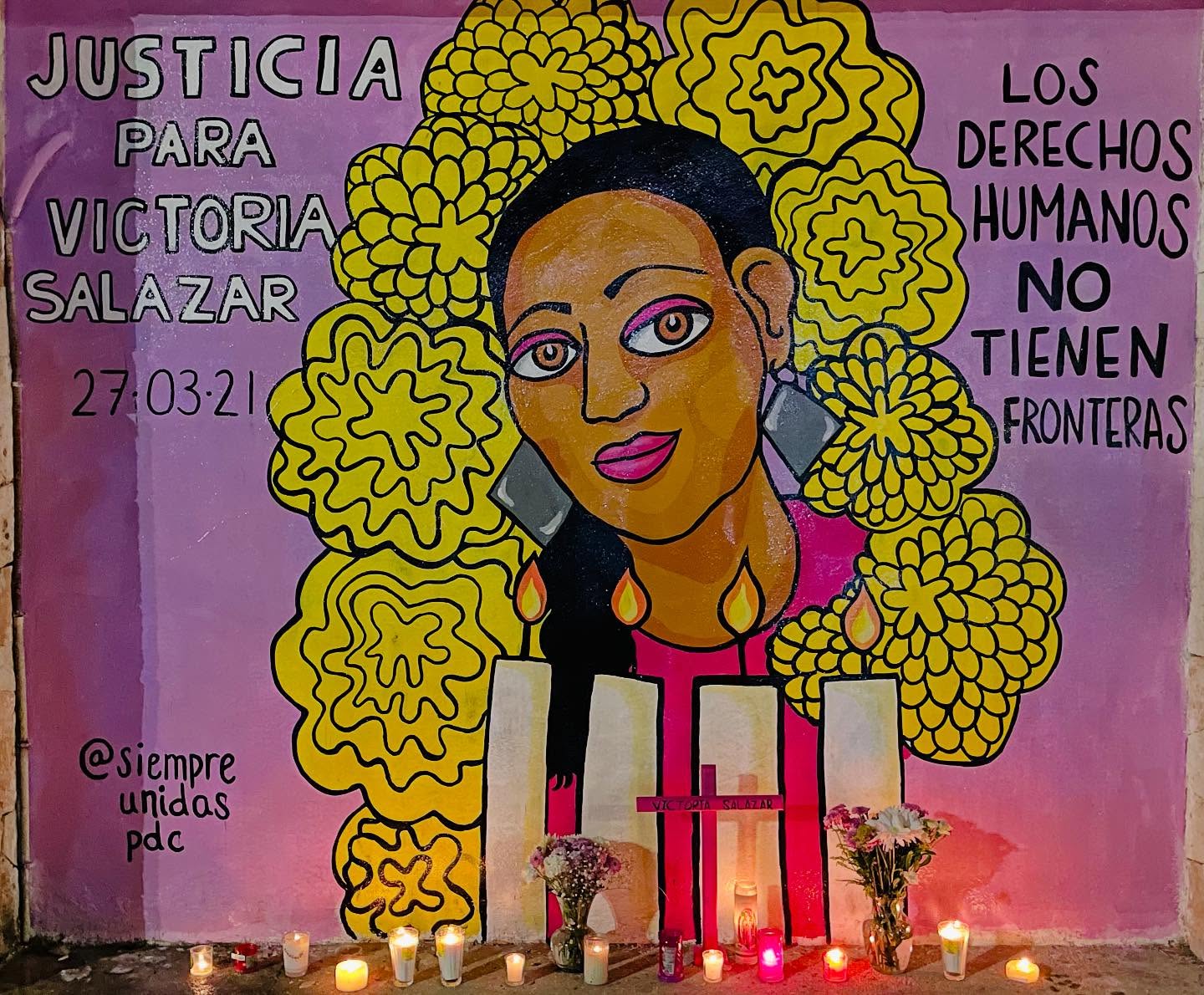 Así quedó el mural en memoria de la migrante salvadoreña Victoria Salazar, que asesino la policía el 27 de Marzo de 2021 en Tulum. 💜🔥💚